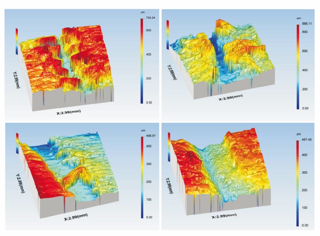 Auf Grundlage dieser Rohdaten können die wichtigsten Oberflächenparameter wie beispielsweise Sa, Sq und Sz bestimmt werden.